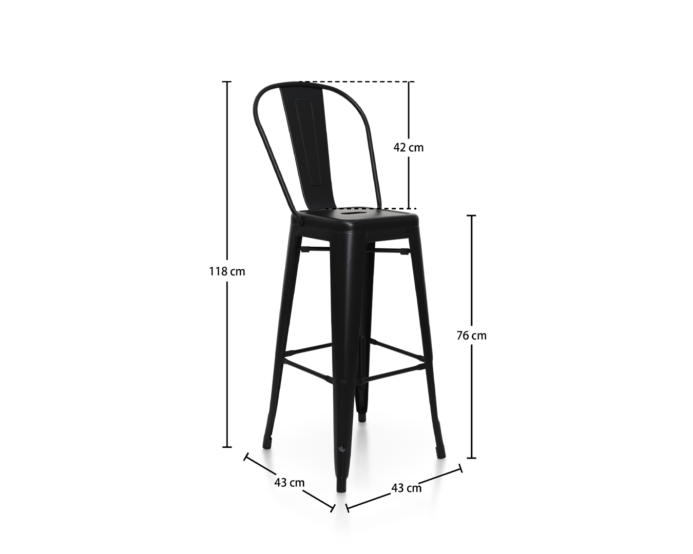 Ev / Ürünler / Tasarım sandalyesi / Backrest ile Siyah Metal Barstool