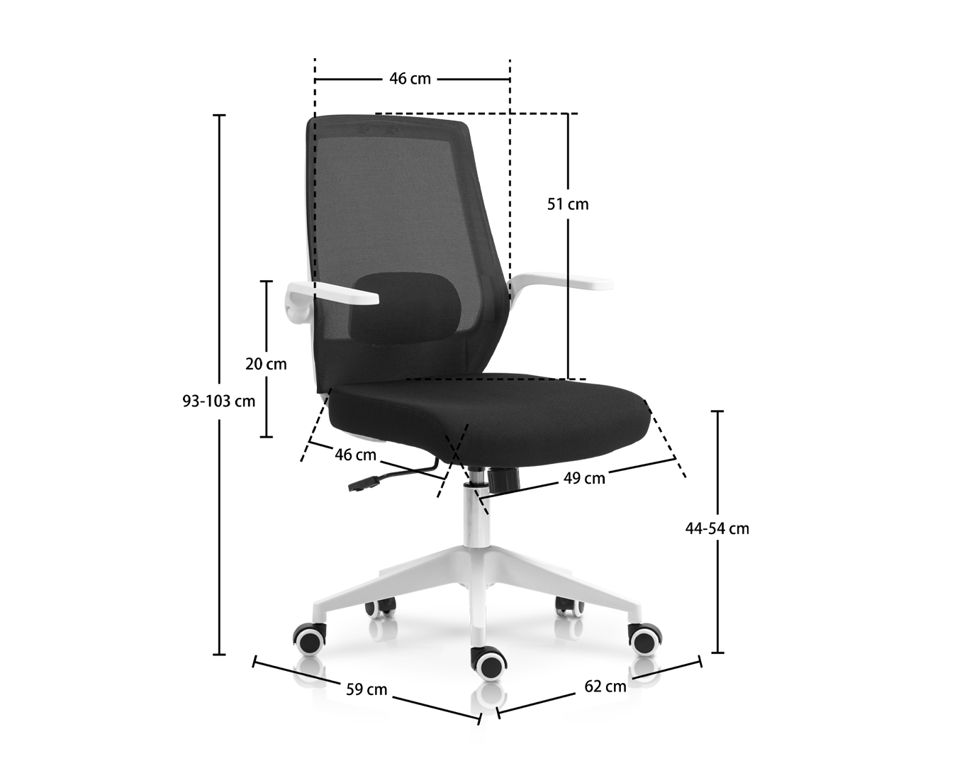-Boyut: W62*D59*H93-103 cm / sh: 44-54 cm