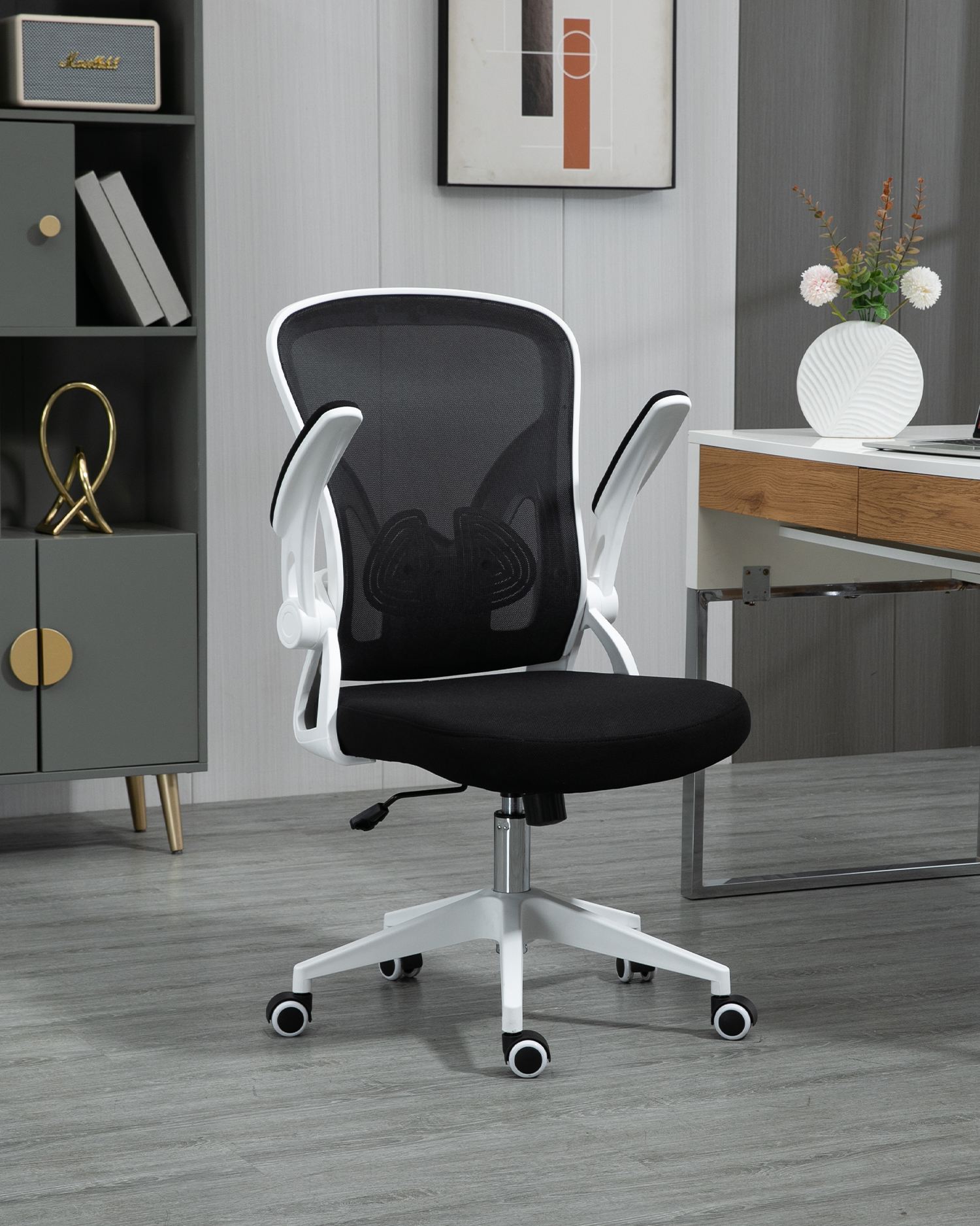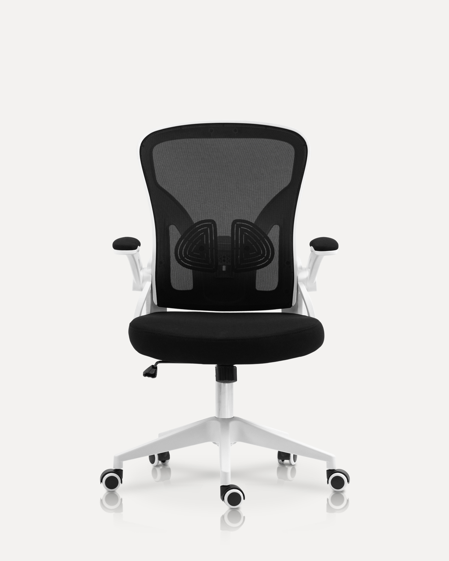 • Beyaz kolçaklar ve beş noktalı tekerlekli bir taban ile tamamlanan siyah örgü sırt ve koltuklu şık ve çağdaş bir tasarıma sahiptir. Mesh malzemesi sadece sandalyenin şık görünümüne katkıda bulunmakla kalmaz, aynı zamanda mükemmel nefes alabilirlik sağlar ve gün boyunca serin ve rahat kalmanızı sağlar.
