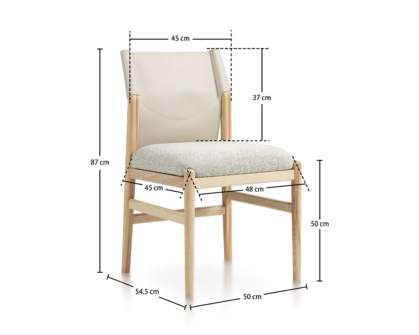 • Yüksek kaliteli kül ahşabından üretilen çerçeve, pürüzsüz kaplama ve ince tane desenleri ile malzemenin doğal güzelliğini ve dayanıklılığını sergiler. Saddle Deri Backrest, hem stil hem de destek sunan lüks bir dokunuş sağlar. Esnek dokusu ve zengin rengi, sandalyenin genel tasarımını tamamlayarak ince işçiliği takdir edenler için ideal bir seçim haline getirir.