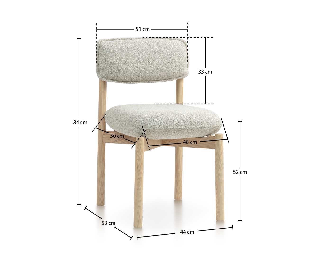 • Yüksek kaliteli kül ahşabından üretilen açık renkli yüzey, malzemenin doğal güzelliği ve tane desenlerini vurgular ve herhangi bir alana sıcaklık ve zarafet ekler. Peluş, döşemeli koltuk ve backrest, uzun süre stilde rahatlayabilmenizi sağlayarak maksimum konfor için tasarlanmıştır. Yumuşak, dokulu kumaş sadece cilde karşı lüks hissetmekle kalmaz, aynı zamanda sandalyenin minimalist tasarımını da tamamlar.